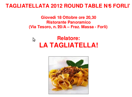 E’ giunto il momento della Tagliatellata…la nuova Tagliatellata 2012 che sarà serata Service in