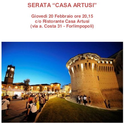 è con grande piacere che Vi invito alla prossima serata di Tavola che si terrà presso la suggestiva location di “Casa Artusi”, a Forlimpopoli.
